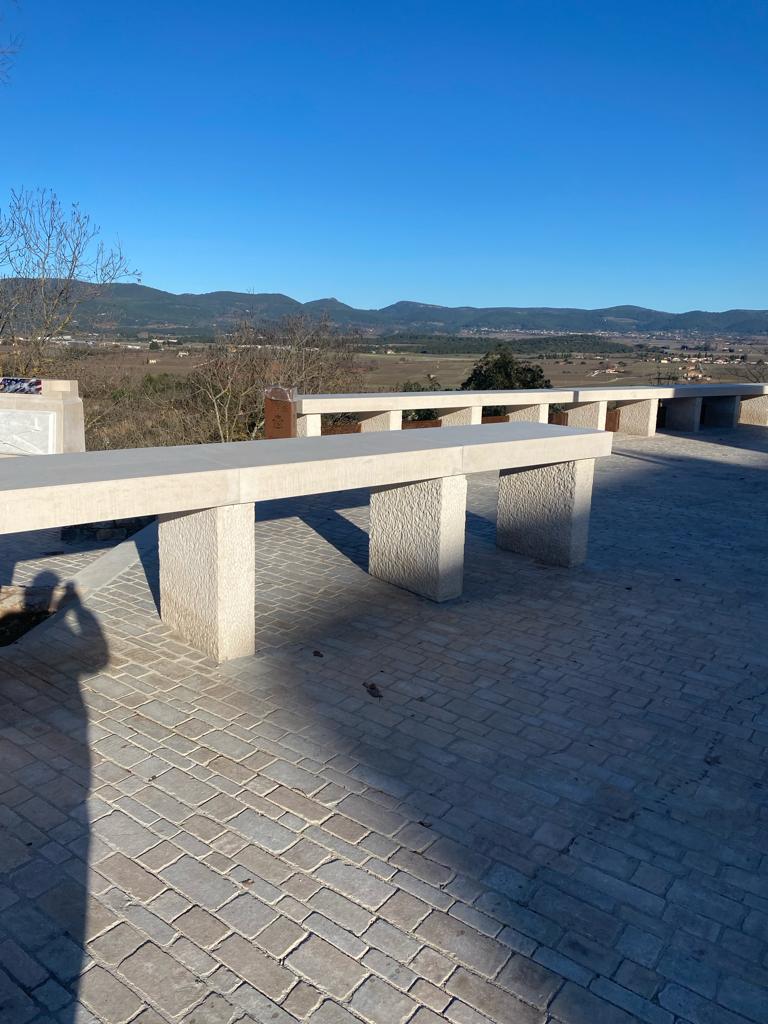 - 65 mètres de garde-corps « banquette » en calcaire posés.