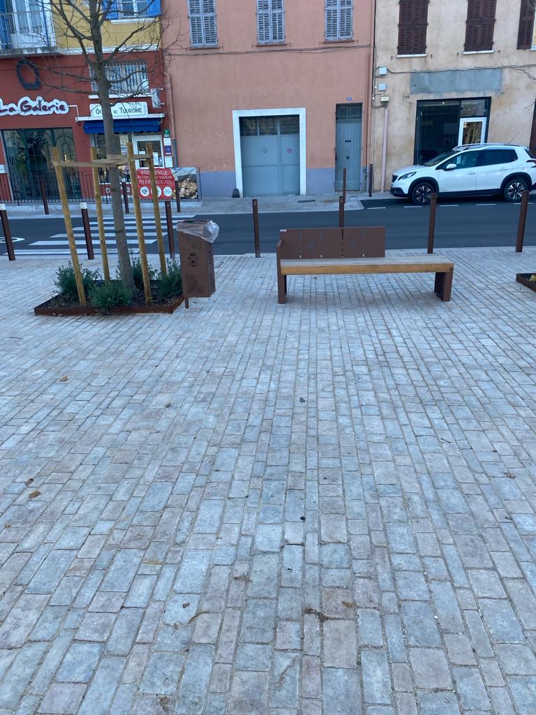 - Sols et mobilier urbain : Pavage, béton désactivé, marches, seuils, garde-corps, enduits de façades, remise en état des revêtements, installation de mobilier urbain.